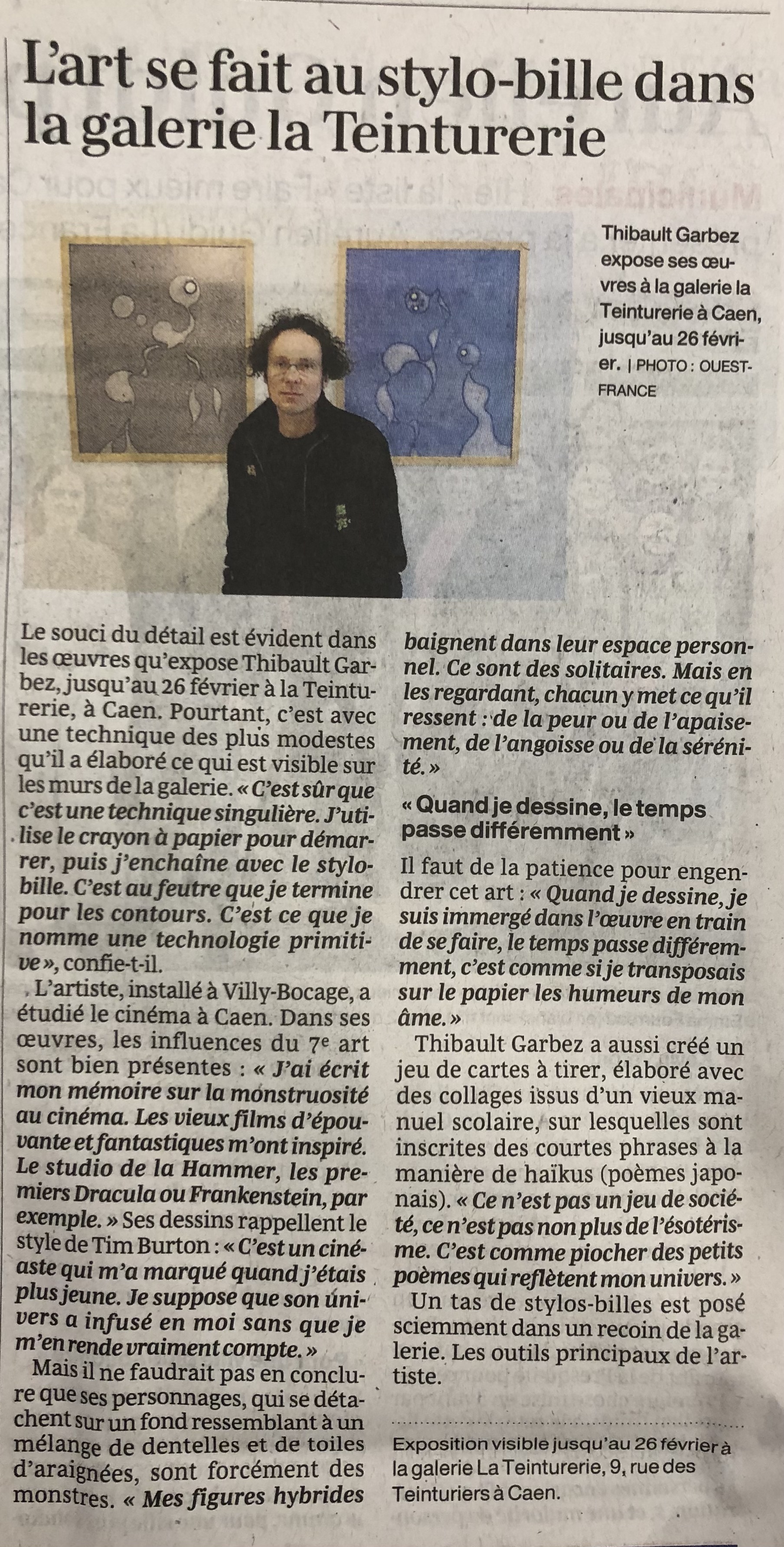 Premier article dans la presse suite à ma première expo en solo. Merci à Régis Bodrug pour la photo.